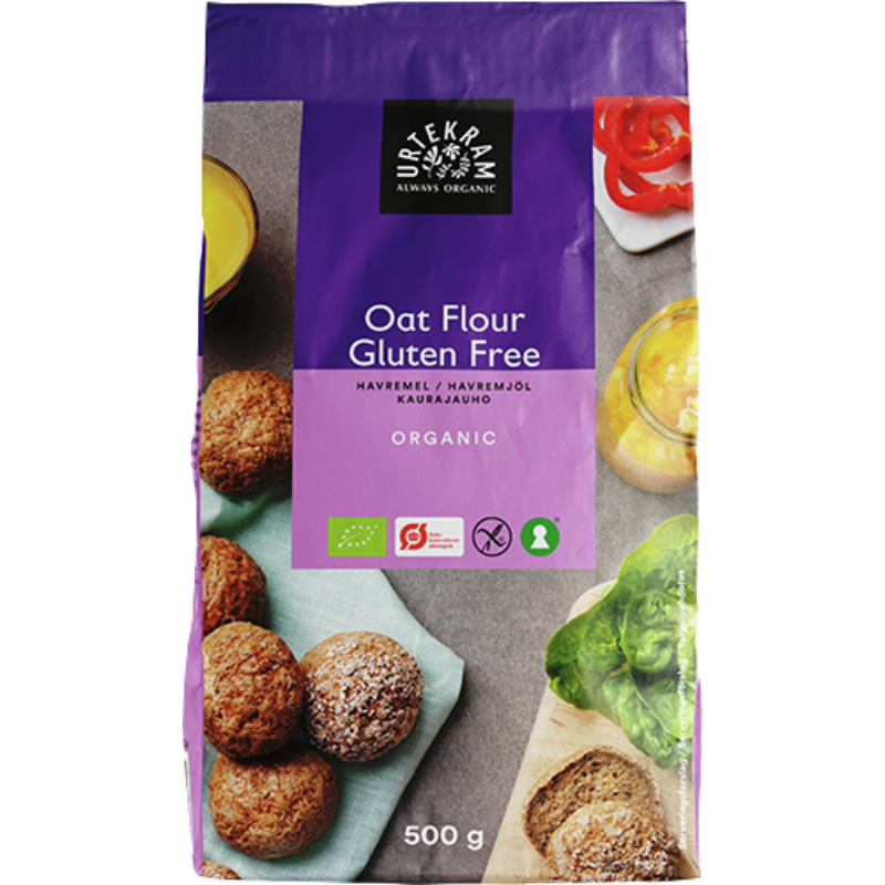Økologisk Havremel fra Urtekram, som kan bruges til alt bagning i det glutenfri køkken.