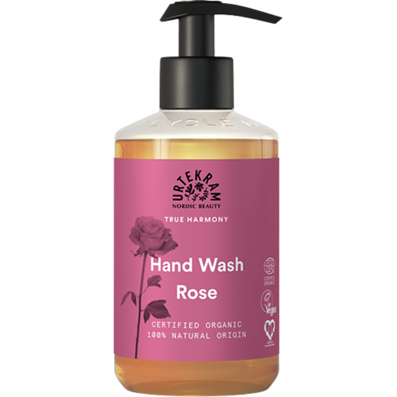 Varedeklaration: Vand, aloe vera*, kokos- og majsglukosesæbe, vegetabilske olieprodukter, glycerin**, salt, citronsyre, rosengeraniumolie*, rosenblomstekstrakt*, parfume (planteekstrakt), vitamin E. * = økologisk. ** = fremstillet ved brug af økologiske råvarer.
