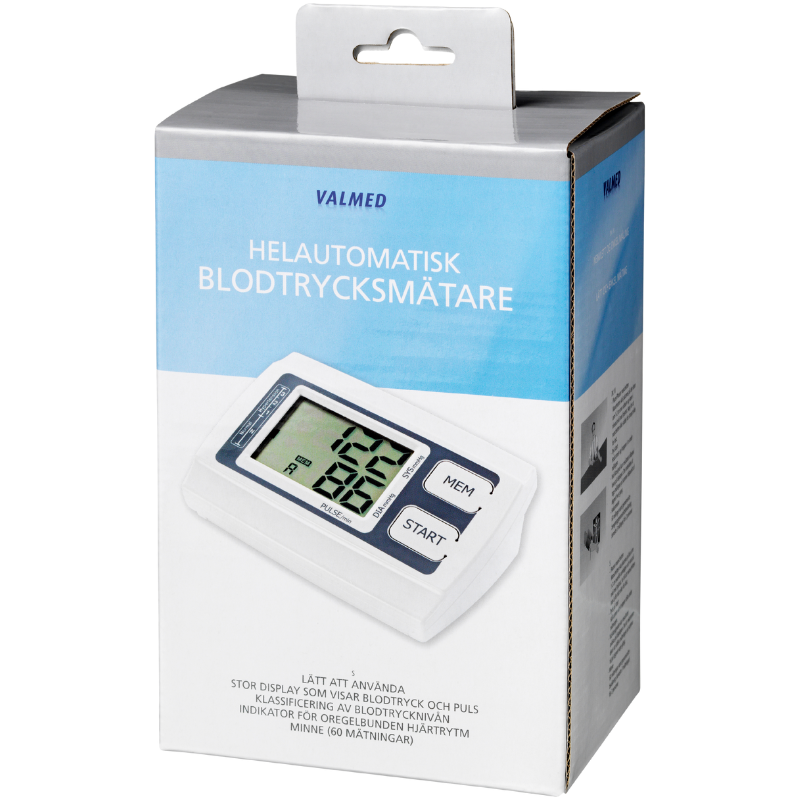 Med ValMeds fuldautomatiske blodtryksmåler kan du nemt og præcist måle dit blodtryk derhjemme. Den er designet til overarmen og sikrer en pålidelig og komfortabel måling, så du trygt kan følge med i dine værdier i vante omgivelser.