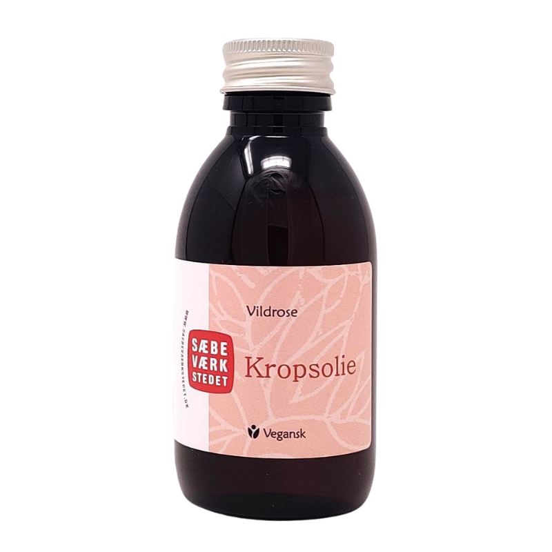 En skøn olie med en behagelig blomstrende duft af vildrose. Vildroseolien består af mandel- og abrikoskerneolie, tilsat æteriske olier i en lav koncentration, så du kan anvende olien hver dag i eller efter badet. De naturlige olier plejer huden og tilfører vigtige næringsstoffer, og anvendes vildroseolien på let fugtig hud, binder den fugten og holder huden spændstig og blød. Olien indeholder æterisk olie af lavendel, geranium og ylang-ylang, alle rene æteriske olier, valgt for deres plejende, afbalancerende og cellereparerende virkning. Endelig er vildroseolien tilsat lidt naturlig e-vitamin, intet andet. Olien indeholder ingen kunstige konserveringsmidler, parabener m.v.