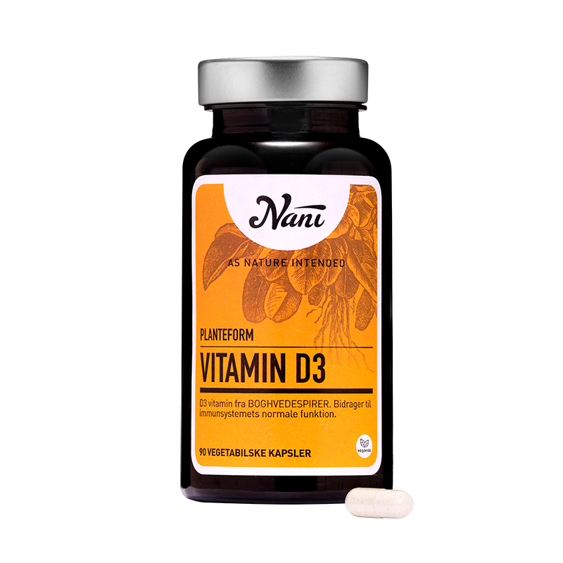Nani Vitamin D3 vegetabilsk, er et kosttilskud med vegetabilsk vitamin D3 fra naturlig kilde.