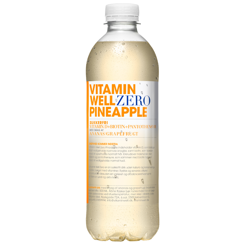 Nyd en forfriskende og sukkerfri drik med en eksotisk smag af ananas. Vitamin Well Zero Pineapple er det perfekte valg for dig, der ønsker en læskende drik uden kalorier, men stadig fuld af god smag.