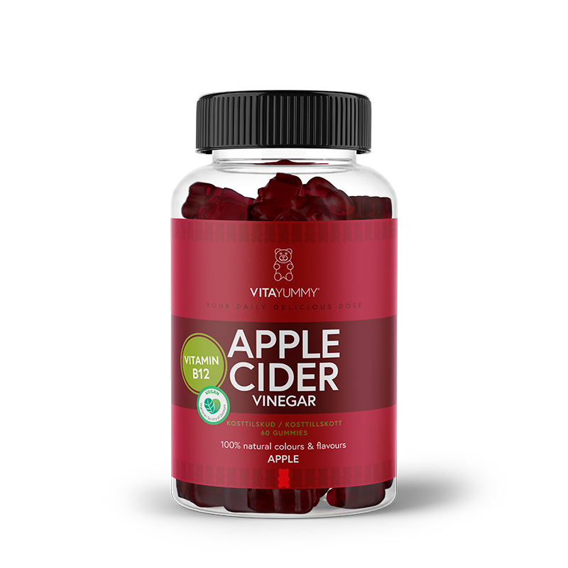 Derudover indeholder VitaYummy Apple Cider Vinegar også B12, da den har mange spændende egenskaber, idet B12 blandt andet bidrager til et normalt energistofskifte, nervesystemets normale funktion, normal psykologisk funktion, normal dannelse af røde blodlegemer, immunsystemets normale funktion, og til at mindske træthed og udmattelse og samtidig spiller B12 en rolle i celledelingsprocessen