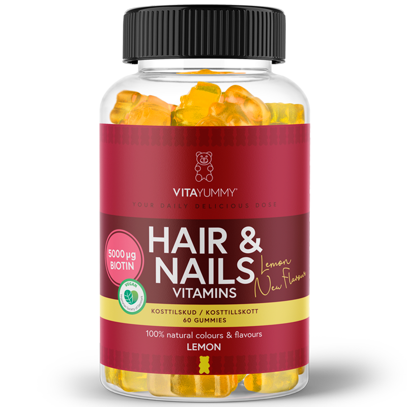 VitaYummy Hair & Nails Lemon (60 stk) er et unikt kosttilskud til hår og negle i form af 60 gummies, som ikke bare gør det let at tage vitaminer og mineraler, men gør det sjovt og lækkert.