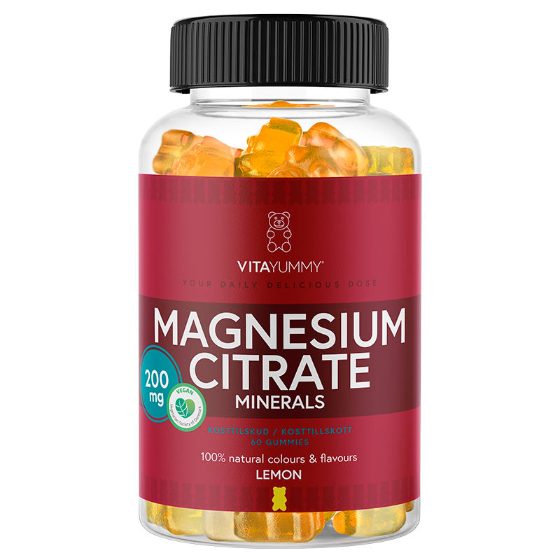 VitaYummy Magnesium Citrate (60 stk) er et vitamin kosttilskud forklædt, som lækre gummies med en skøn smag og blød konsistens, der gør det sjovt at tage dit daglige kosttilskud. Disse gummies er fremstillet uden kunstige farve-, smags- og sødestoffer. Disse gummies er veganske, og har en skøn smag af citron.