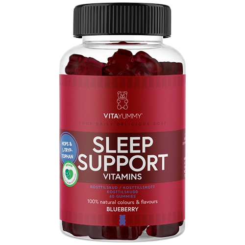 Kosttilskud fra VitaYummy, der indeholder den essentielle aminosyre L-Tryptofan, humle og vitamin B6.