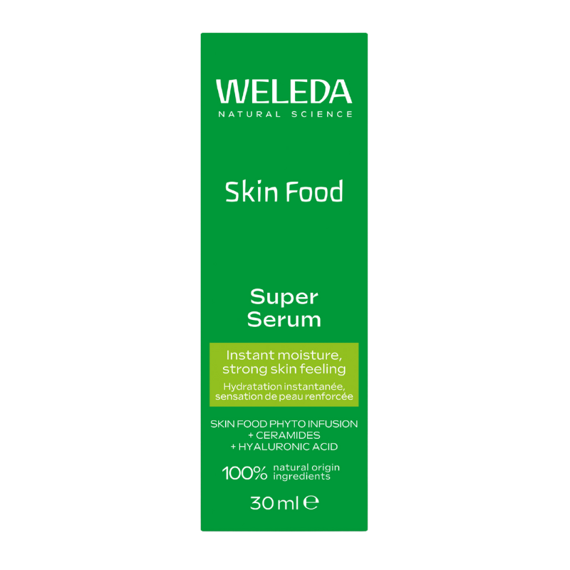 Giv din hud intens fugt og styrkelse med Weleda Skin Food Super Serum. Dette ansigtsserum er beriget med hyaluronsyre og ceramider, der arbejder sammen for at genopbygge hudens barriere og give dybdegående hydrering for en sund glød.
