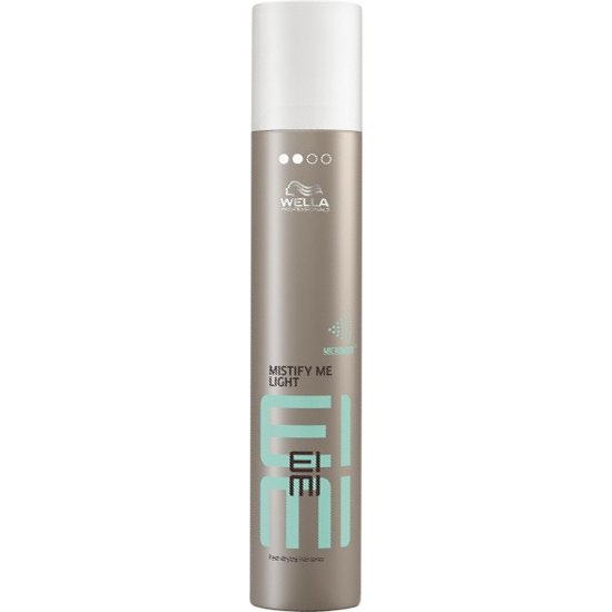 Mistify Me Light fra Wella EIMI er en hurtigtørrende hårspray, der tilfører et medium hold til frisuren. Hårlakken giver en let afstivning, der sørger for, at håret holdes på plads hele dagen igennem, men stadig let kan børstes igennem for at få en naturlig finish.