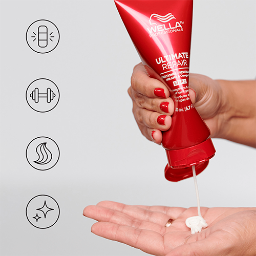 Få stærkere, sundere udseende og mere glansfuldt* hår efter hver brug med Ultimate Repair Deep Nourishing Conditioner fra Wella Professionals. Denne daglige balsam, der synligt reparerer skadet hår, er drevet af en patenteret teknologi, der kombinerer alfahydroxysyre (AHA) og omega 9. AHA genopbygger bindingerne i cortex, så håret får en stærk kerne, og Omega 9 genopfylder overhuden i varme- og afbleget hår for at genskabe dets beskyttende barriere. Parabenfri og velegnet til alle hårtyper. *vs. ikke-plejende shampooIngredienser
