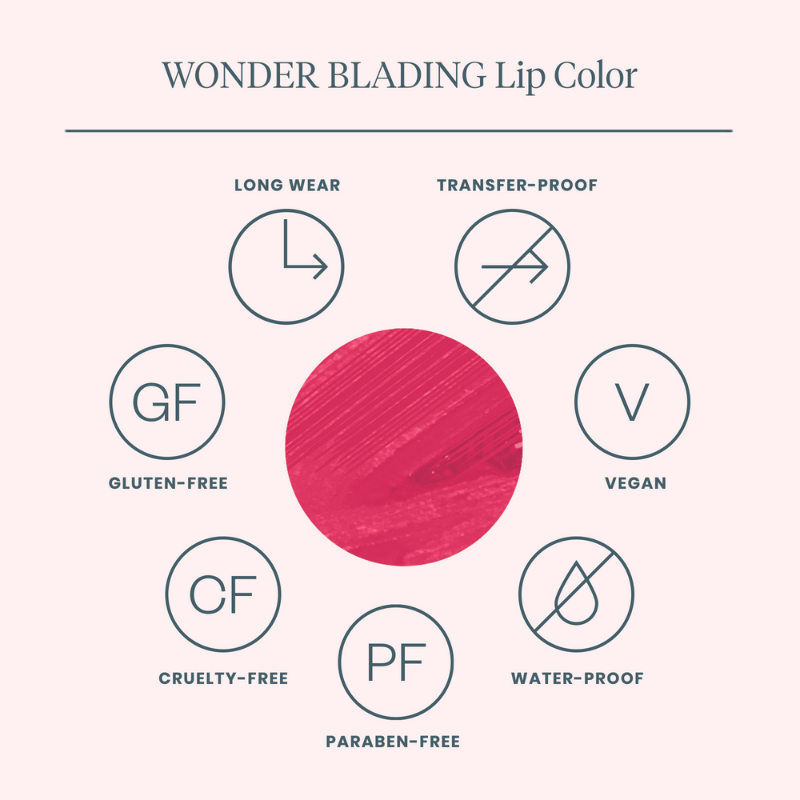 Få smukke, holdbare læber med Wonderskin Wonder Blading Lip Stain Kit. Denne innovative teknologi giver en plejende farve, der hverken smitter af eller tværer ud, så dit look holder hele dagen. Perfekt til dig, der ønsker et fejlfrit resultat.