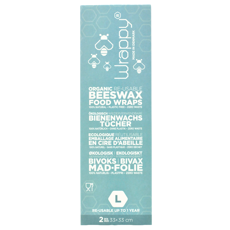 Wrappy Genanvendeligt Bivoks Madindpakning Ø 33x33 cm (2 stk) er et 100% naturligt alternativ til plastik wrap eller folie, der er mad sikker og let at genanvende. De unikke papirer er lavet i Økologisk bomuld, bivoks, harpiks og jojobaolie.